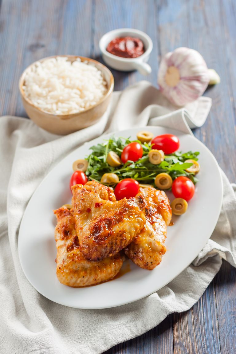 - Готові крильця подавайте до столу з відвареним рисом та свіжим салатом. За бажанням можна збризнути його соком лимона.