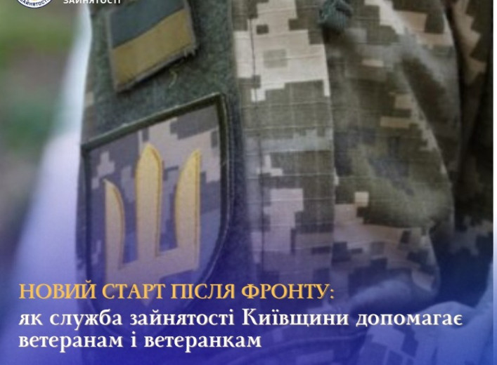 Служба зайнятості Київщини з початку 2025 року прийняла 650 ветеранів та ветеранок, з яких 130 уже працевлаштовано, а 91 — отримав грант на власну справу. Про це повідомляє Славутицька міська рада з посиланням на сторінку служби у фейсбук Повернення