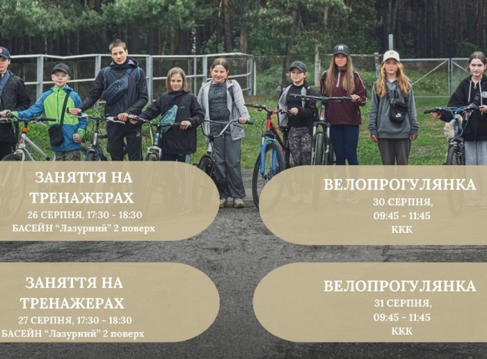 буде долучитися до волейболу, бадмінтону та настільного тенісу. Час проведення з 18:00 до 20:00. 11 серпня запланована велопрогулянка до кінно-спортивної бази міста Славутича та активності на місці. Зустріч відбудеться в