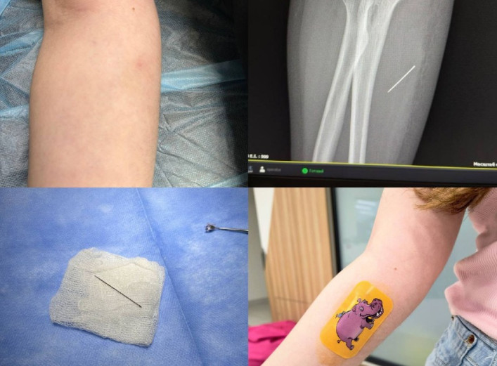 На Львівщині 13-річна школярка тиждень ходила з голкою в руці після випадкового уколу вдома. Спершу батьки помітили лише маленьку цятку і подумали, що це укус комахи. Згодом з'явився набряк і дитина не могла згинати руку, тож родина звернулася