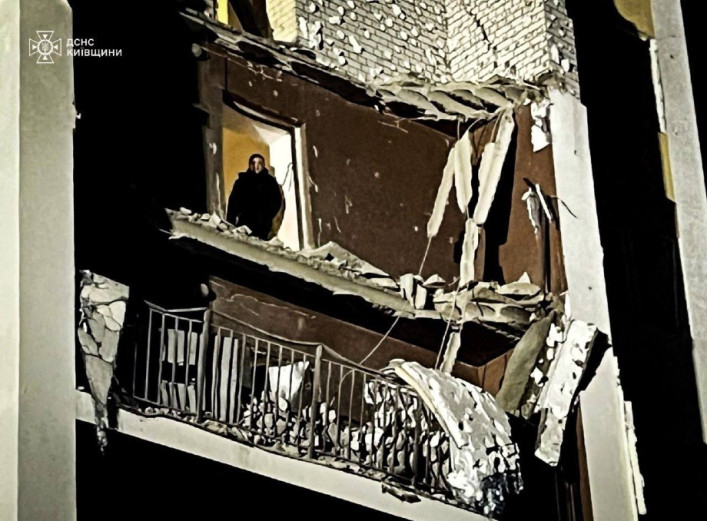 У місті Вишневе, що на Київщині, внаслідок атаки пошкоджено 9-поверховий житловий будинок: зруйновано балкони з 5 по 9-й поверхи. За інформацією ДСНС, надзвичайники врятували п'ятьох осіб. Попередньо постраждалих немає. Крім того, у Фастівському