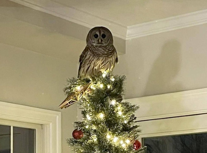 У Вірджинії (США) родина з Арлінгтона отримала несподіваний різдвяний подарунок — сову, яка влаштувалася на верхівці їхньої ялинки. Ця дивовижна подія сталася напередодні свят, і фотографії, зроблені господаркою будинку, швидко поширилися