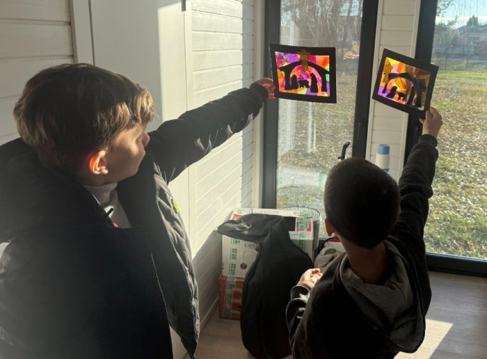 Різдва відбулася особлива зустріч для дітей парафії. Під час підготовки до свята вони створювали власні різдвяні вітражі та роздумували над сенсом Різдва Христового. Про це повідомив отець Юрій Логаза. У тиші храму