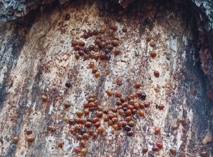 У лісах зони відчуження науковці зафіксували скупчення сонечок під корою старих дерев. Яскраві жуки шукають захищені місця, щоб успішно перезимувати в умовах теплої для грудня погоди. Про це повідомляє Чорнобильський Радіаційно-екологічний