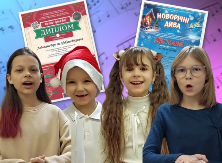 учнів із видатними здобутками на міжнародних фестивалях-конкурсах! Перемога на фестивалі «Новорічні дива» Дует у складі Жорової Анни та Цибулі Микити, учнів 2 класу вокального відділу, виборов І місце на ІV