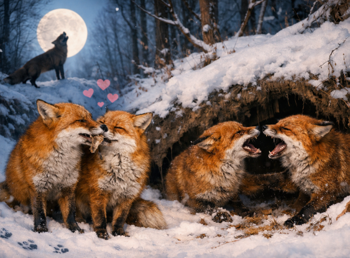 та відганяють конкурентів. Також лисиці можуть мати стосунки з кількома партнерами, але коли самець і самка починають залицяння, вони тримаються разом, кілька тижнів полюють поруч і зрештою знаходять спільне лігво. У цей