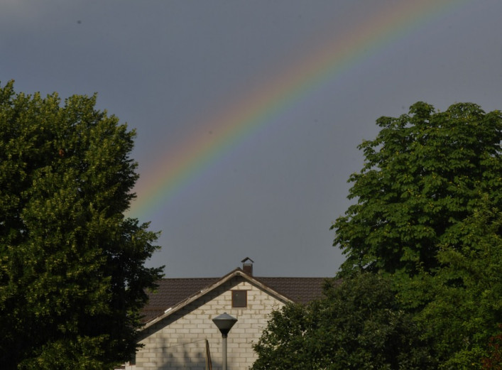 Липень у Славутичі став прикладом кругообігу води в природі. Після кількох днів спеки небо повертає воду на землю короткочасними зливами, а потім дарує місту яскраву веселку. Сонячна погода змінюється дощем, але негода не затримується надовго