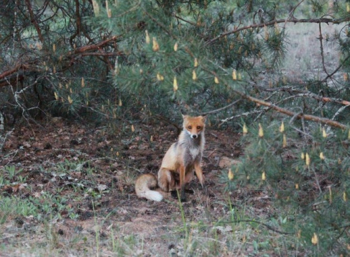 Радіаційно-екологічному Біосферному Заповіднику спостерігають за станом здоров'я однієї з лисиць. У літній період, коли лисиці активно линяють, їхній зовнішній вигляд змінюється через випадання старої шерсті та зростання