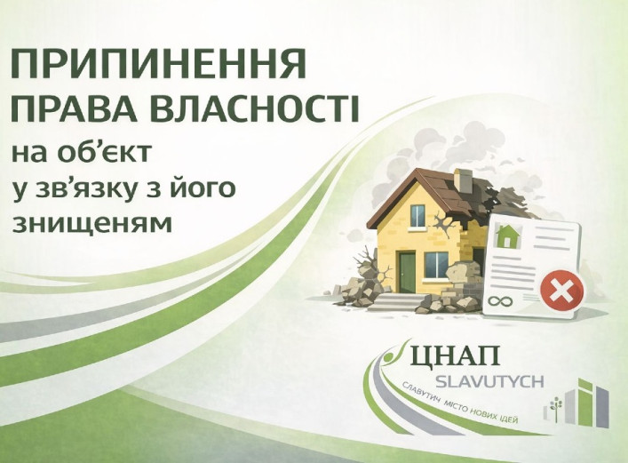 У Центрі надання адміністративних послуг міста Славутич надали роз’яснення щодо державної реєстрації припинення права власності на об’єкт нерухомості у разі його знищення. Про це повідомляє Центр надання адміністративних послуг