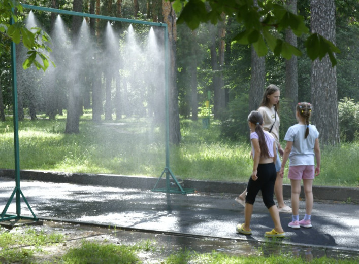 Літо увірвалося у Славутич — тепер містяни шукають прохолоду під деревами, біля річки, або в затінку улюбленого кафе. А діти знайшли ще одне місце, де можна сховатись від спеки — просто у центрі парку. Ще кілька тижнів тому всі