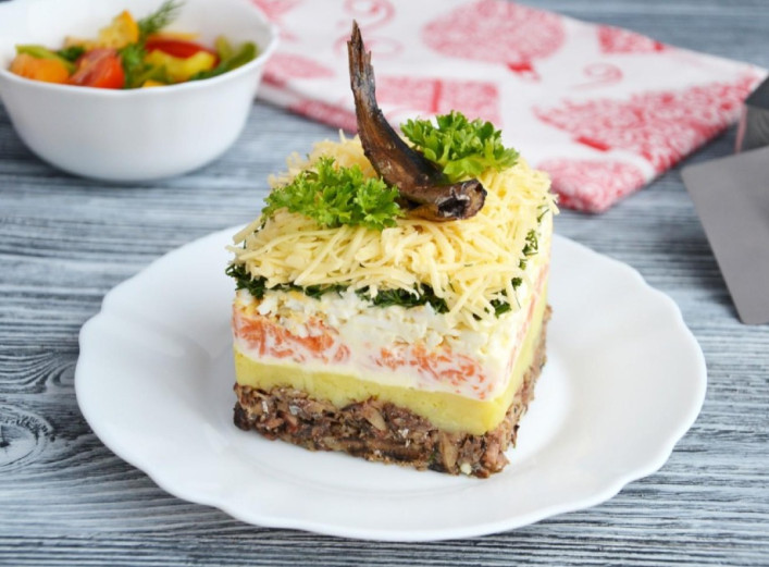 Цей салат зі шпротами — чудовий варіант для тих, хто шукає щось бюджетне та смачне для святкового столу. Рецепт включає прості інгредієнти: шпроти, картоплю, моркву, яйця, твердий сир і майонез. Підготуйте овочі та яйця заздалегідь для