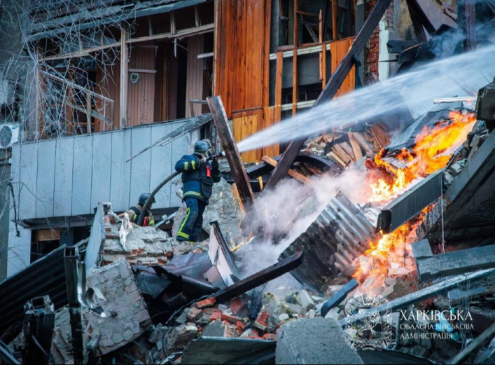 Під завалами зруйнованої будівлі у Харкові можуть залишатися ще п’ятеро людей, зв’язку з ними наразі немає. Про це повідомили в обласній військовій адміністрації. За попередніми даними, під час вибуху люди могли перебувати в офісній