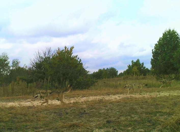 На одному з фото з фотопасток Чорнобильського радіаційно-екологічного біосферного заповідника вдалося зафіксувати зграю вовків, які майже повністю зливаються з ландшафтом. Про це повідомляє Чорнобильський Радіаційно-екологічний Біосферний Заповідник
