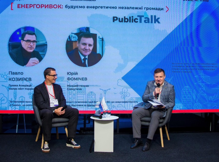 На форумі «ЕнергоРивок: будуємо енергетично незалежні громади» відбувся публічний діалог за участі міського голови Славутича Юрія Фомічева та голови Асоціації малих міст України Павла Козирєва. Обговорення було присвячене розвитку