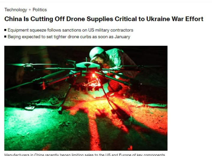 Китай планує запровадити обмеження на постачання деталей для дронів, які використовуються в Україні, що може суттєво вплинути на виробництво безпілотників, необхідних для оборони країни. Згідно з інформацією видання Bloomberg, ці заходи можуть