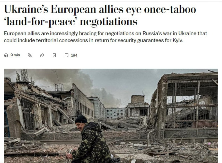 Серед європейських союзників України поступово набирає популярності думка, що конфлікт з росією може бути вирішений лише через переговори між Києвом і москвою, які передбачають можливі територіальні поступки з боку України. Про це повідомляє