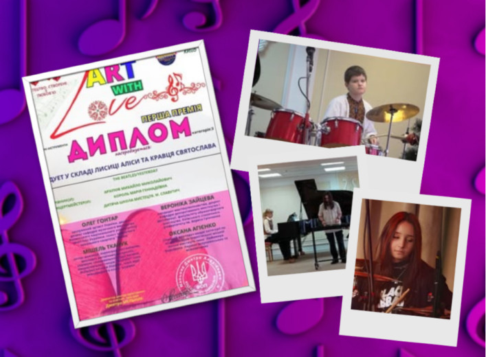 Учні Дитячої школи мистецтв міста Славутич Лисиця Аліса та Кравець Святослав стали лауреатами І премії Міжнародного двотурового конкурсу "Art with Love". Про це повідомляє Дитяча школа мистецтв міста Славутич. Дует виступав у складі струнно-щипкового